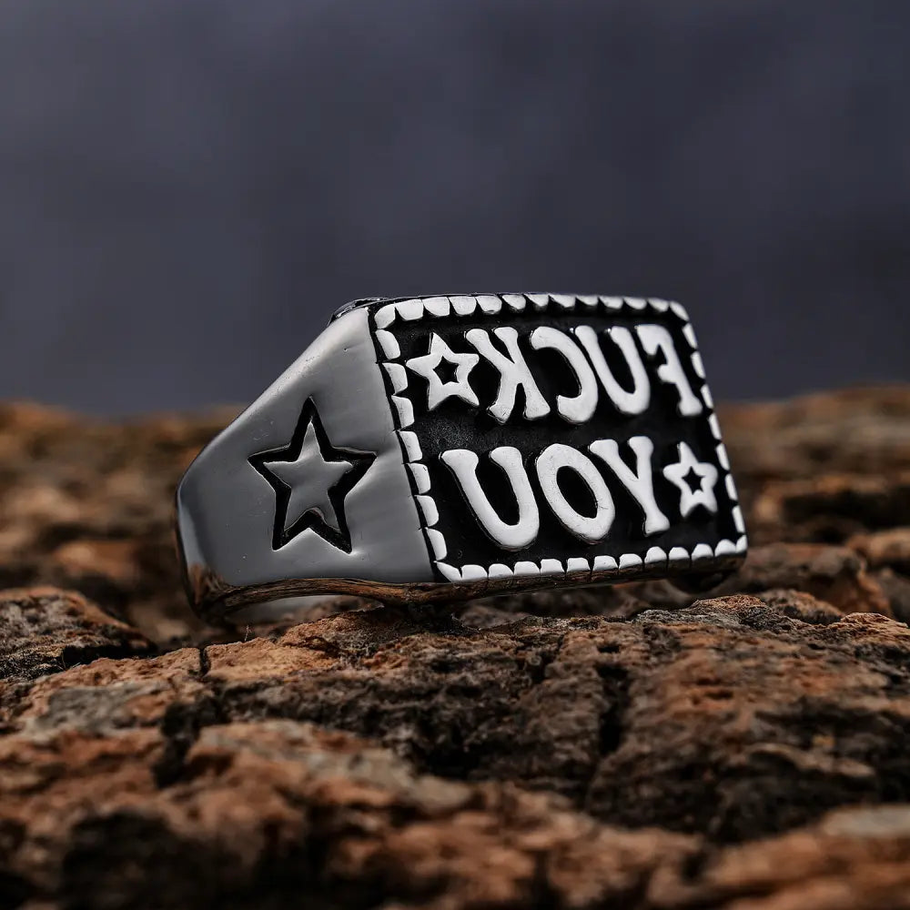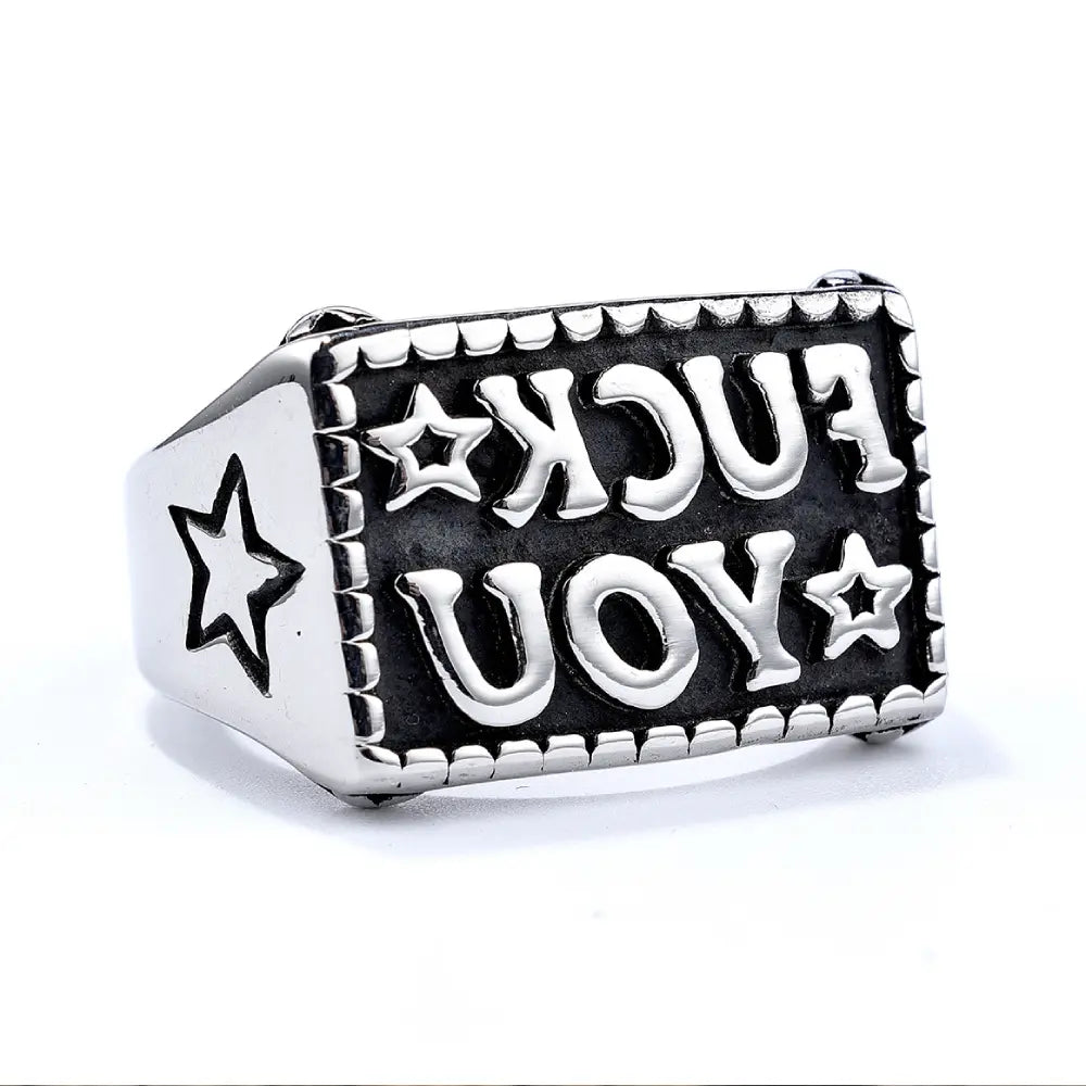 Although the "FUCK YOU" on the ring is a vulgar insult, it is essentially the wearer's fierce resistance to a certain authority (such as hypocritical rules or oppressive ideas).