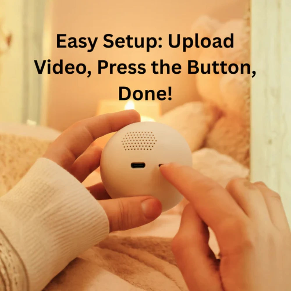 Open the mobile app, connect your Orb, and upload your favorite video or memory.